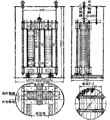 圖3-3是我國制造的35千伏550千伏安消弧線圈的內部結構
